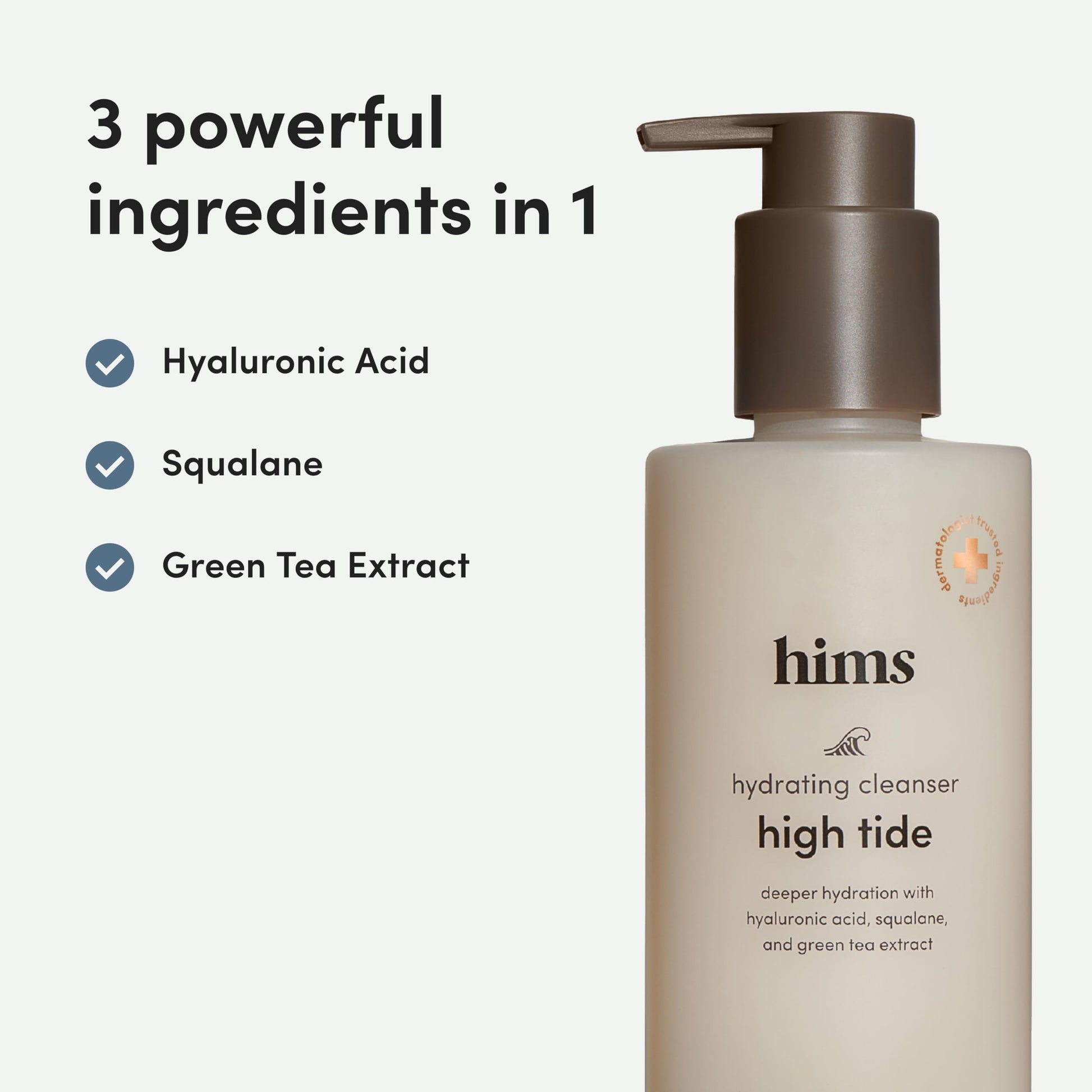High Tide Cleanser gently removes dirt and impurities without stripping or drying skin. Formulated by dermatologists with hyaluronic acid and squalane, it cleanses, soothes, and hydrates in one step. The pH-balanced formula protects your skin barrier while maintaining natural moisture. Perfect for morning and night—simply massage onto damp skin, lather lightly, and rinse.